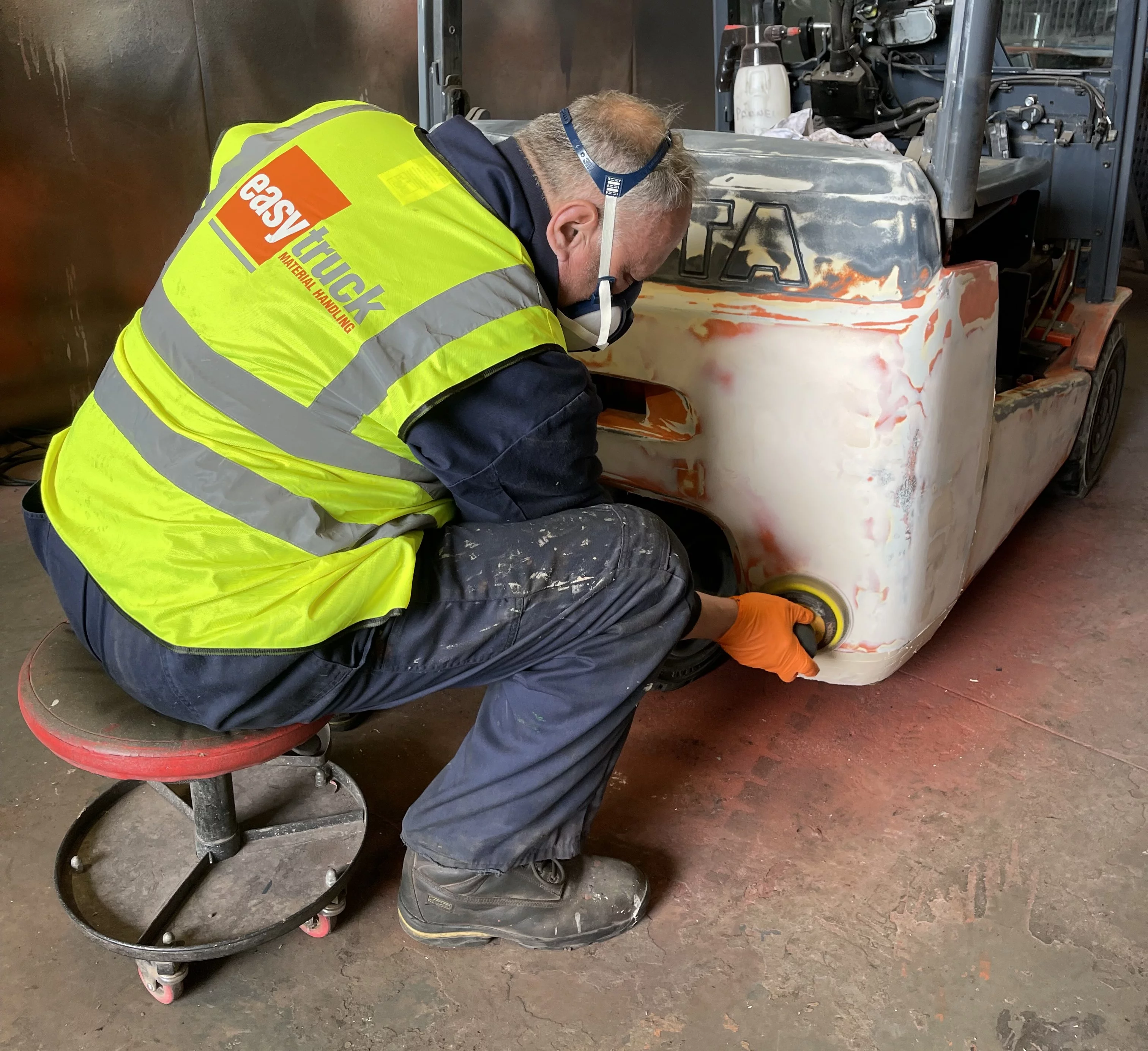 Our Bodywork Repair and Paint Specialist, Rob, applies his 30+ years of trade experience to bring the truck back to manufacturer standards. The forklift undergoes bodywork infills and a full repaint, making it look like new. Rob’s expertise, honed from his previous work in the automotive industry, ensures top-quality results.